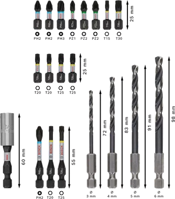 - Robust screwdriving and Long Life drilling in metal - Extended torsion zone absorbs torque stress at the tip of the screwdriver bit